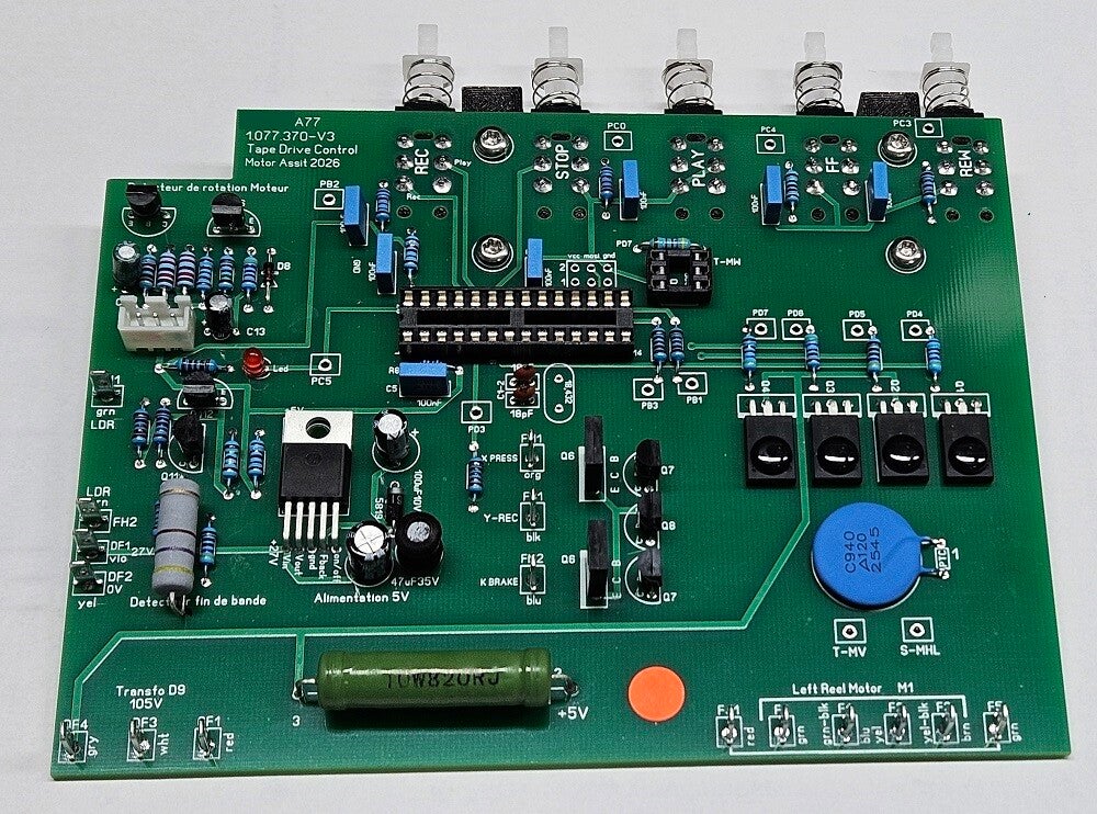 La carte de contrôle à relais pour le Revox A77, ne sera plus produit. En remplacement, nous développons une version entièrement refaite, utilisant des composants modernes et un microprocesseur capable de gérer toutes les fonctions du magnétophone.